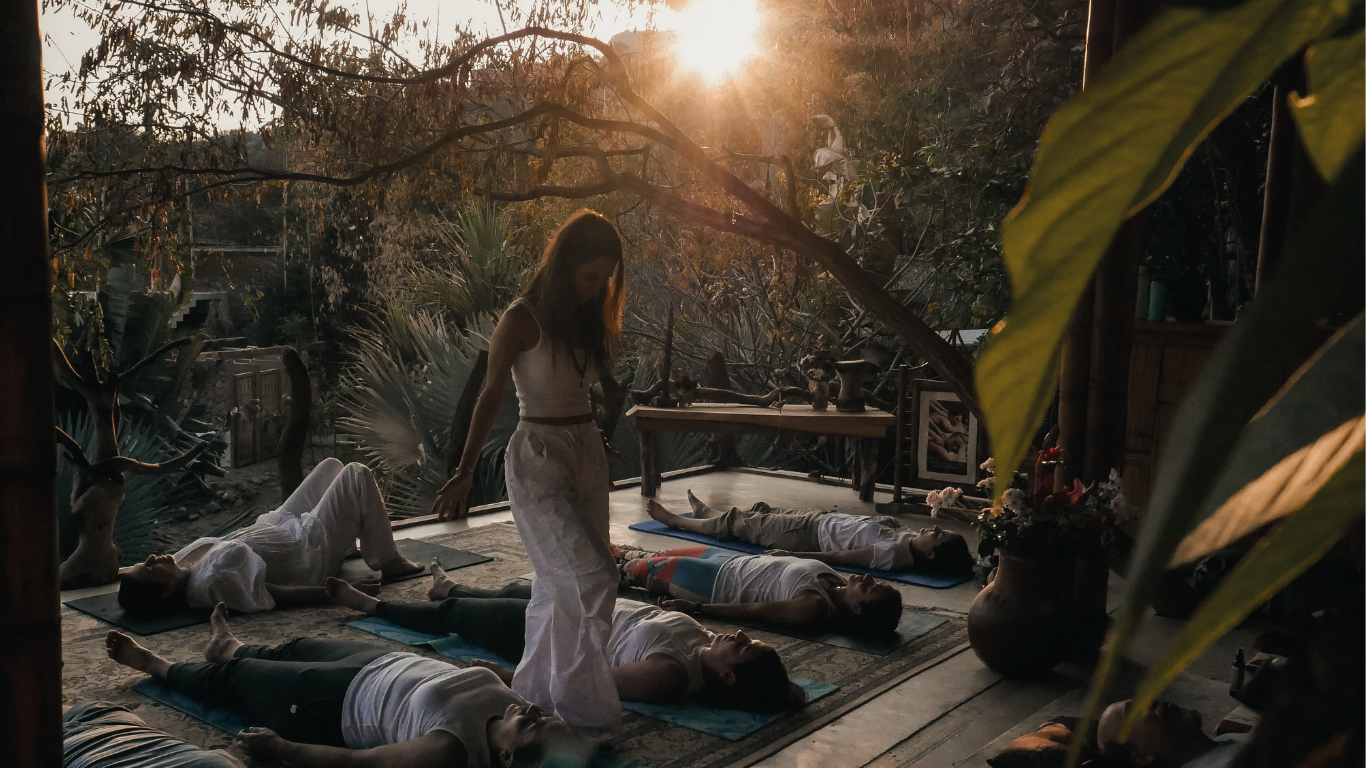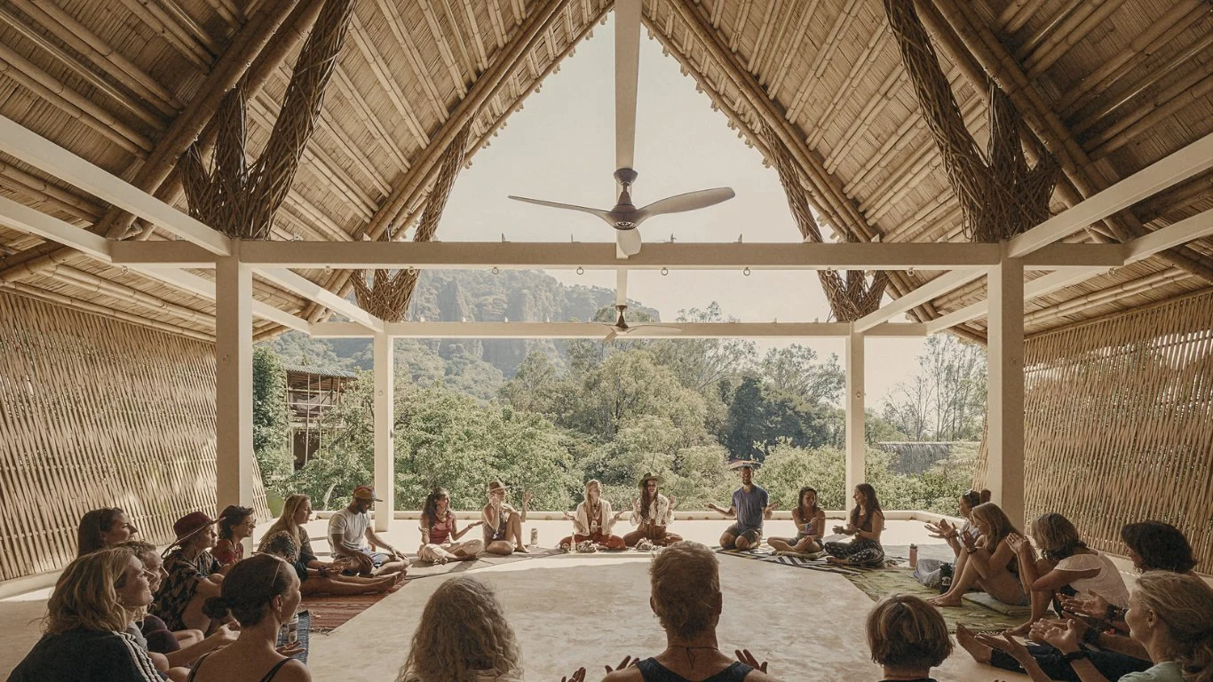 Is the perfect spot at AmateCamp for sharing yoga practices, meditation, breathwork, sound healing, music circles, cacao ceremonies, and workshops.
