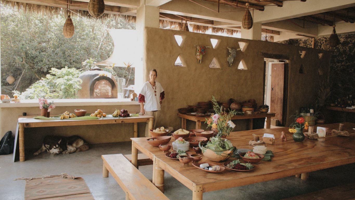 In our restaurant we cook everything with love, the food we prepare is plant based healthy food. We specialize in Mexican, Italian and Ayurvedic food. We offer a fruit bar and local teas at all time. We have our own orchards so we try to ensure that all food is created from our own land. All the water we offer is Kangen which has 9.0 ph to alkalize the body. We are 100% alkaline consumption, we avoid processed products and everything that is not good for our body.